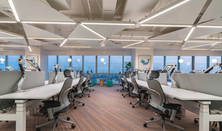 A座总部自持,彰显企业实力,设计高度约133米,以国际甲级商务标准打造总部办公空间。约900平米五星级奢阔大堂,挑高约9.9米 ;配备13部国际一线品牌高速电梯,高区梯速3.5m/s,低区梯速2.5m/s,等候时间不超过30s,极大提升商务效率;标准层层高约4.2米,约9米超宽柱距,增加办公的半开放性和灵活性,尽享办公舒适性。
